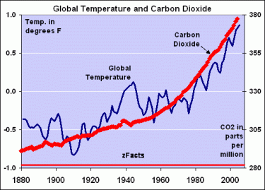 As you begin to do your own research on these topics, you will no doubt run into lots of misinformation perpetrated by climate change deniers, who are generously funded by the various industrialists who have an interest in the matter (although some are foolish enough to do their bidding for free). One tactic that they use is to point to a temporary downward fluctuation in global temperature as “proof” that global warming is “a hoax,” while completely ignoring the obviously upward long-term trend, as illustrated by this chart.[8]